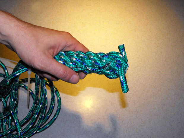 nuestro perro Dodger Ripea los juguetes del perro normal aparte en unos 15 minutos. "Juguetes indestructible" toman un poco más ;)Aprendí cómo hacer un nudo de puño de mono en un festival malabares unos años--hice a Dodgers un juguete de cuerda