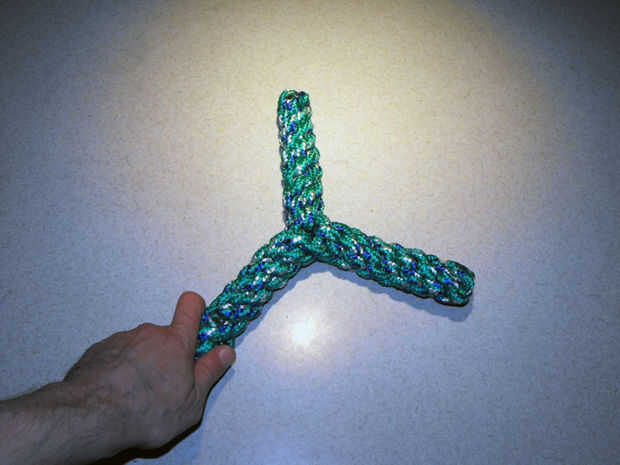 nuestro perro Dodger Ripea los juguetes del perro normal aparte en unos 15 minutos. "Juguetes indestructible" toman un poco más ;)Aprendí cómo hacer un nudo de puño de mono en un festival malabares unos años--hice a Dodgers un juguete de cuerda