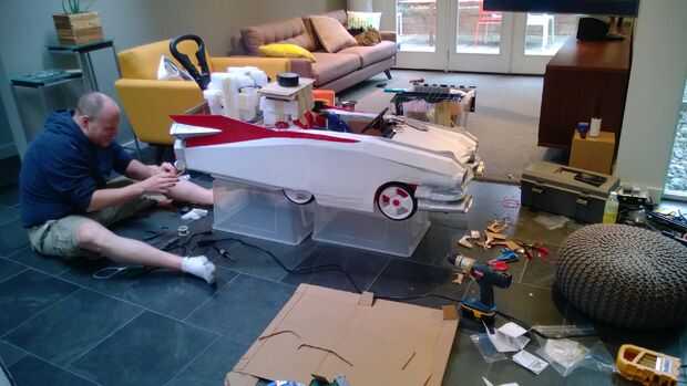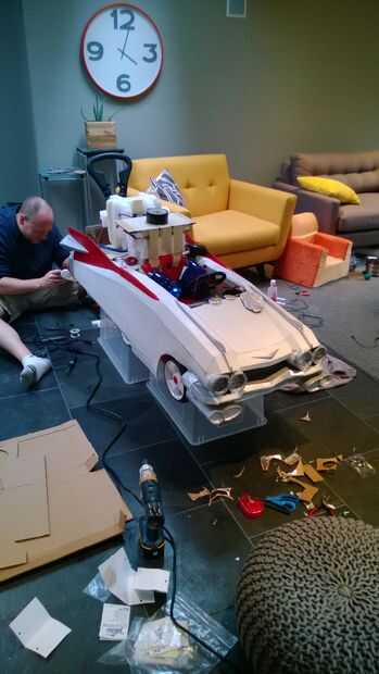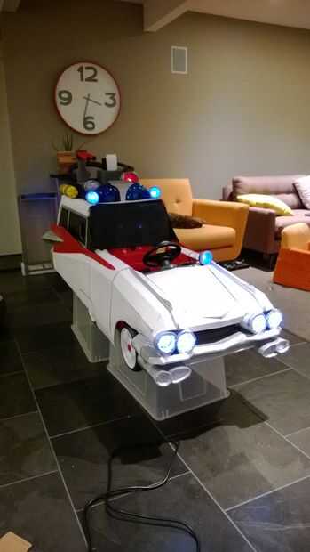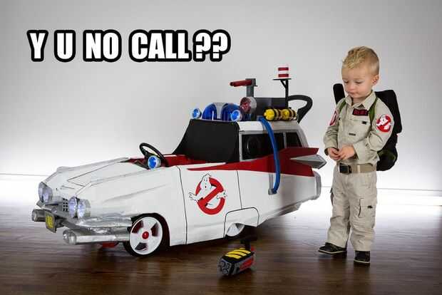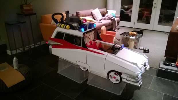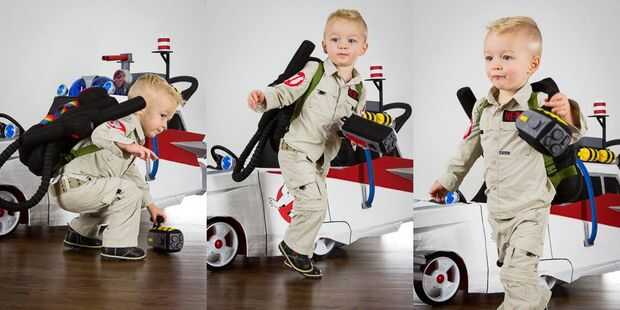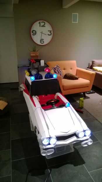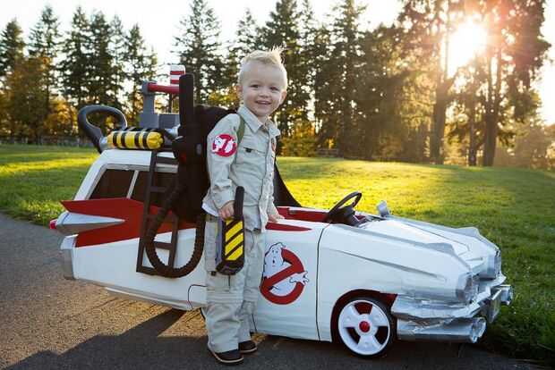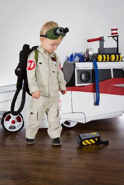 Armado con un coche «heredada» de empuje Step2, cajas de cartón reciclados de su movimiento reciente, electrónica de repuesto de un vehículo viejo, tazas de salsa de Mexicana para llevar, vaciar botellas de pop, LED de la tienda de electrónica local y algunos pintura y cinta que estaban bien equipadas. Traje de la cooperativa no sería tan fácil como comprar un chaleco rojo de Old Navy; su madre buscaron ayuda entre artistas de ideas afines geek y chocó con Etsy vendedor JezebelRose. Dos semanas de noches y fines de semana largos y los padres de Cooper ver su visión a la vida. Tenían el tema GB pegado en la cabeza infinidad de veces, su pequeño Cooper ahora puede responder a la pregunta "quién le va a llamar ¡" con un entusiasta "Ghostbusters!", y lograron construir un Cazafantasmas Ecto - 1 y totalmente armado mini - fiar bastante para asustar a cualquier fantasmas bien inmediatamente a la sumisión.