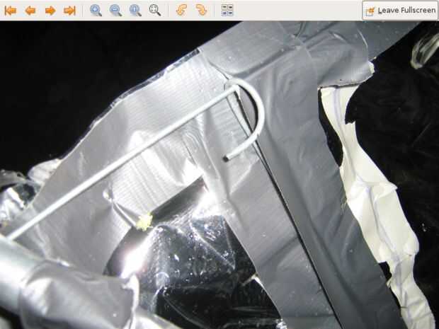 Que coloca la sombrilla sobre la cúpula de la cob y el borde del alambre derecho hay asaltos y luego ducttaped sobre el alambre. Luego con el paraguas en la cúpula, cortar 2 cables cruzados para ir sobre él y doblada para sostener el alambre de borde.