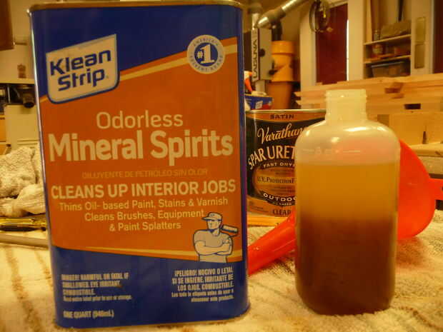 Hay muchas opciones para el solvente. Diluyente de pintura es común. Alcoholes minerales es mejor refinados alcoholes minerales por lo que no huele tan mal. Algunos utilizan aguarrás. Otros usan nafta porque es se evapora más rápido.