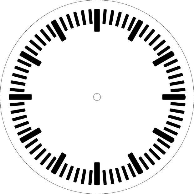 La nueva cara del reloj será simplemente pegar sobre la esfera del reloj antiguo. ¿Por qué no usar la vieja cara de reloj? Si puedes, pero hará más fácil estimar el tiempo con una precisión infalible de unos 5 minutos si rediseñarlo. Mis diseños tienen los hora marcadores y luego cinco secundario-para 10s de minutos. Si no cambia la cara, los viejos marcadores minuto ahora valdrá 12 minutos cada uno. Inflación de tiempo para usted, similar a lo que podría haber conducido el Big Bang y que realmente no quieres que esto suceda otra vez absolutamente tan pronto.