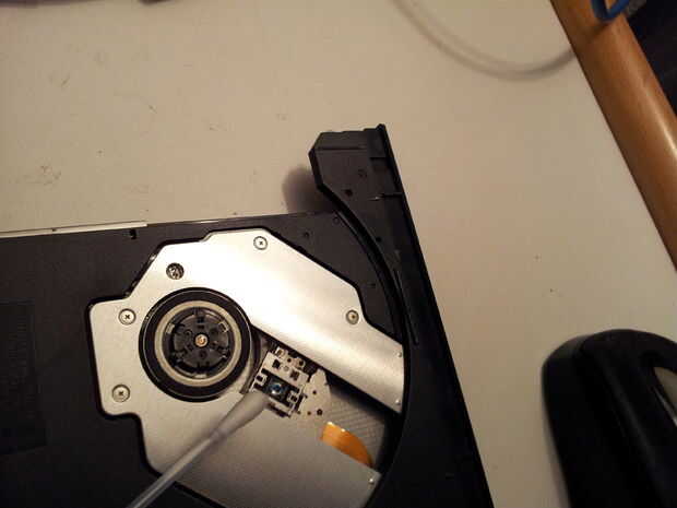 3. Limpie la parte óptica del DVD haciendo giro a la óptica, no presione mucho ya que puede dañar la óptica también.