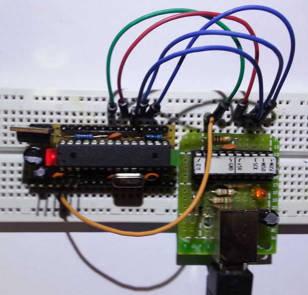Llego a estar usando un programador de medida basado en el popular dispositivo de USBasp.