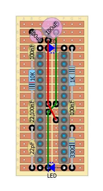 2. comprobar que los LEDs y los condensadores se colocan correctamente.