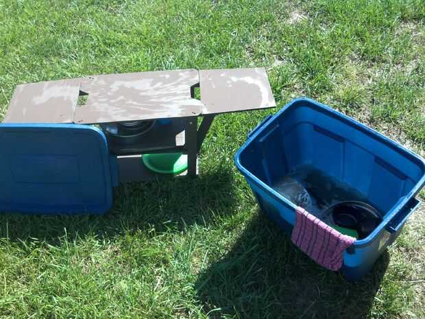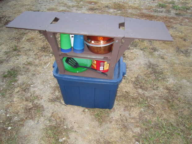 Atornille el conducto cinta palmeada estantes en el interior de los estilos. Cuando usted pone los estantes, los tornillos deben tensar ellos el pasado 1/8" o algo así para que sean enseñados. Después de eso, puede pintar todo, poner tus cosas en él y disfrutar de camping un poco más.