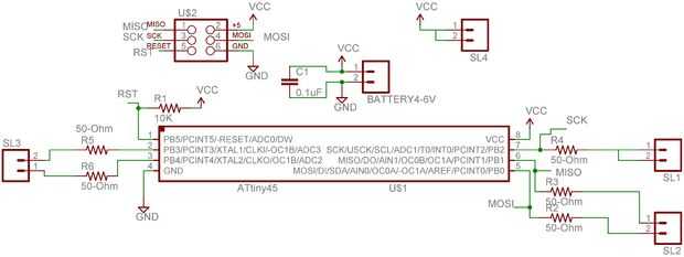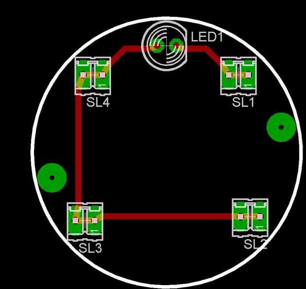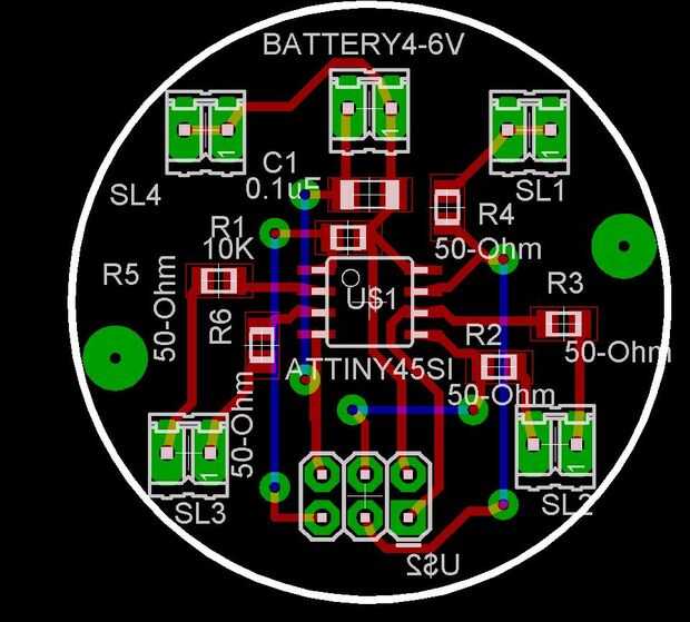 El esquema necesario para la vela está aquí. También es la disposición de la Junta. En el diseño, las pistas de blue son manejadas como los cables de puente. El circuito completo se divide en dos tablas, una que contiene el controlador y el tiene el LED de 1 W. Los dos tableros se arreglan en un Double-Decker, PCB circular. La idea es tener un diámetro total del circuito. cuatro conectores de 2 pines se utilizan para conectar la tarjeta controladora para el tablero del LED. El quinto conector en la tarjeta controladora es el suministro de energía.