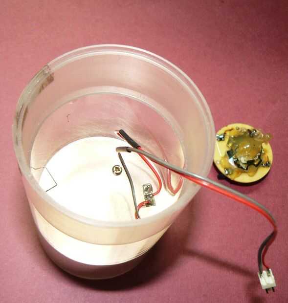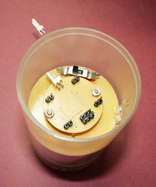 Un largo de 6 pulgadas, tubo de plexiglás ancho de 2,2 pulgadas fue elegido para cerrar la vela. Un pedestal de madera fue trabajado a máquina para montar el tubo de plexiglás. El PCB y el PCB LED fue instalado dentro del tubo en otro 'titular' PCB que también tiene el interruptor de encendido/apagado.
