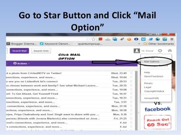 Paso 3: Ahora ir a botón de estrellas y haga clic en "Opciones de correo"