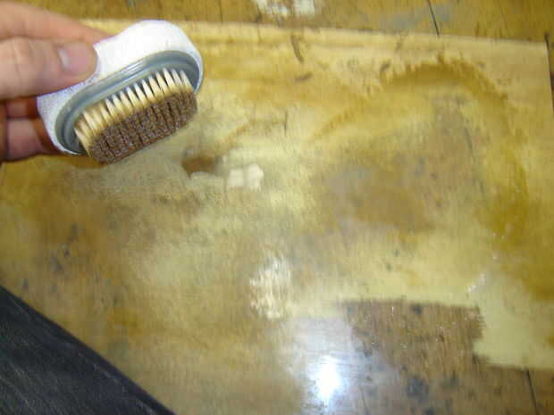 Hacía falta horas de limpieza, lo mejor que he encontrado para usar es un cepillo de porcelana... era lo suficientemente duro para ser útil sin rayar el acrílico, el papel salió relativamente fácil después de empapar en una tina de agua caliente por un par de horas, pero todavía quitó para siempre a cepillo.