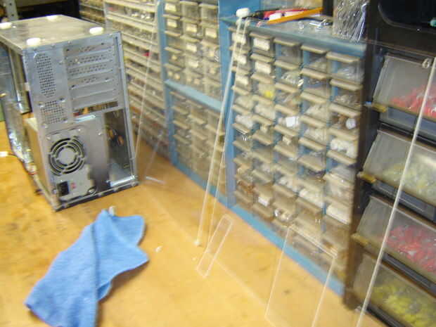 El acrílico fue 1/4 gruesos y se utiliza para los lados caso me faltaba anteriormente. Cortar con la Sierra de mesa después de tomar un descanso de intentar bajar ese papel durante las horas anteriores de la pareja, luego volvió a ella después de perforar los agujeros en cada una de las cuatro esquinas para el montaje a la caja. Había agujeros preexistentes en el caso de que yo sería capaz de montar las partes de plexiglás.