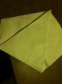 Tomar las esquinas y doblarlas hacia atrás. Cada uno en lados diferentes. (No doble al fondo! Doblez recto!)