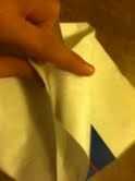 Tomar uno de los rincones que se pega hacia fuera y meter en el bolsillo por debajo de ella. (La imagen ayudará a describir). Repita en el otro lado.