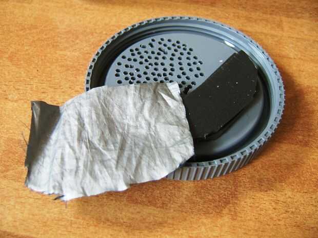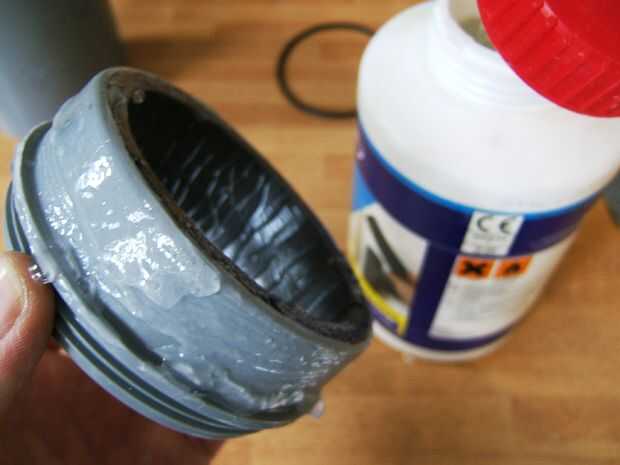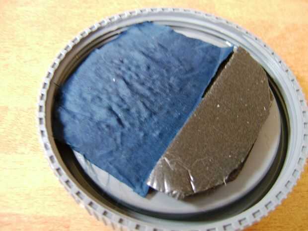 Momento de cola superior e inferior a la orejera con cemento de pvc. Para hacer la parte superior también impermeable pegué un trozo de tela de Gore-Tex (de una tienda antigua) en el interior.