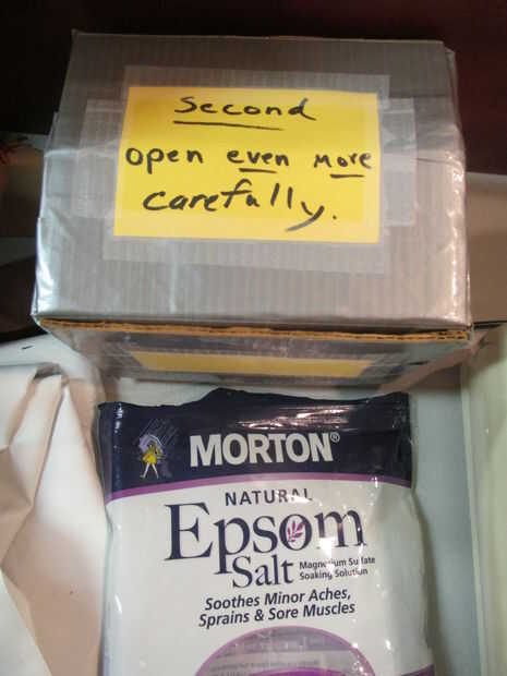 Otra vez, necesitaba algo de peso como el "regalo" que estaba poniendo en la caja pesaba apenas nada. Era arena de pensamiento, pero entonces recordó que tenía algunas sales de Epsom lavanda que huele la abrumadora que me gustó. La solución perfecta para algo que quería deshacerse de todos modos!