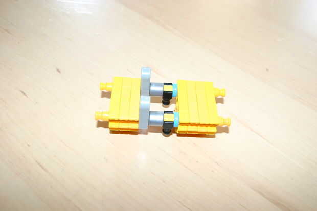 esto es lo que vamos a crear:Paso 1: partes Esto es lo que necesitamos:-34 conectores amarillos-4 conectores verdes-3 conectores naranja-1 conector blanco-3 conectores gris-2 conectores rojo-2 barras amarillas-5 barras gris-4 varillas blanco-6 barras