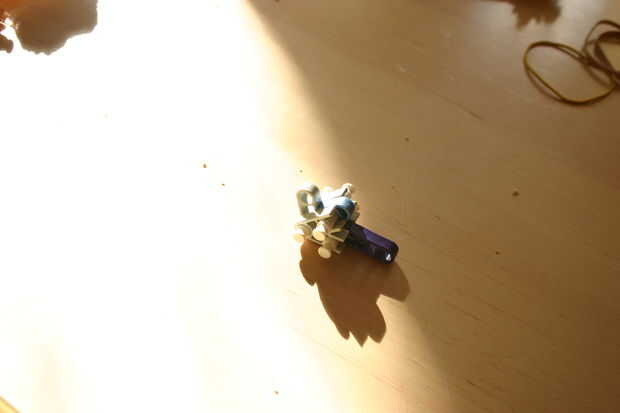 Paso 1: El barril yo llevo largo naranja KVG y conector 2 y hace un tres a un lado y tres en el otro la tomé 2 KVG pequeños y ponerlo en la parte inferiorPaso 2: El mango Tomé diez KVG púrpura y 18 conectores junté 8 gris conectores y la púrpura knex