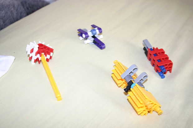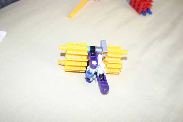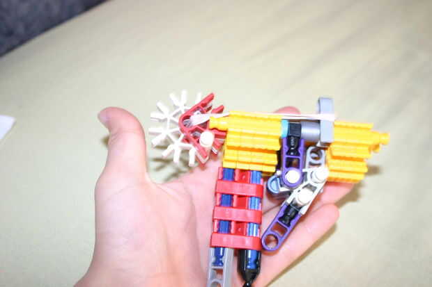 esto es lo que vamos a crear:Paso 1: partes Esto es lo que necesitamos:-34 conectores amarillos-4 conectores verdes-3 conectores naranja-1 conector blanco-3 conectores gris-2 conectores rojo-2 barras amarillas-5 barras gris-4 varillas blanco-6 barras