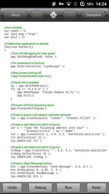 1. Instalar el libre DroidScript IDE la aplicación desde Google Play