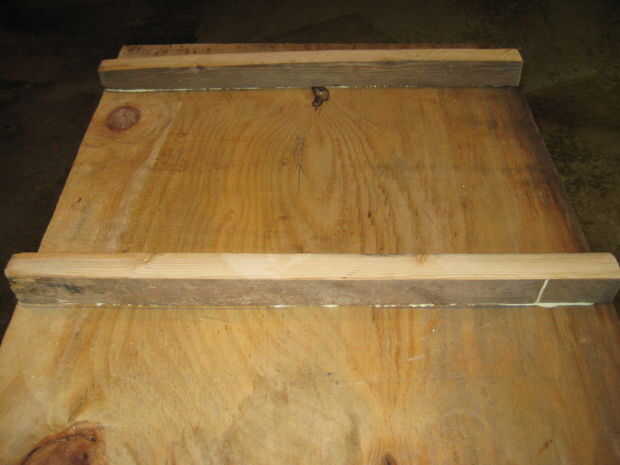 Usando un borde recto transferí la alineación de eje en la parte inferior de la Junta de piso así nuevo donde poner el 2 x 2 para apoyar las llaves.