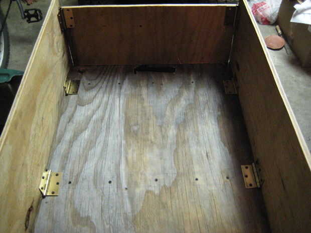 Para el frente vertical lo construyó para caber dentro de los paneles laterales y colocar las bisagras en el borde superior y utilice los pasadores de bisagra para mantener en su lugar. (Nota: Quite los pernos completamente y luego sustituirlos dejando media pulgada expuesta en la parte superior de esta manera se pueden quitar con la mano más tarde) Entonces sujete a los lados y parte frontal. Tenga cuidado aquí mantenerlos lo más recto posible evitar tener el obligatorio (la bisagra cambiará si no centro sus tornillos)