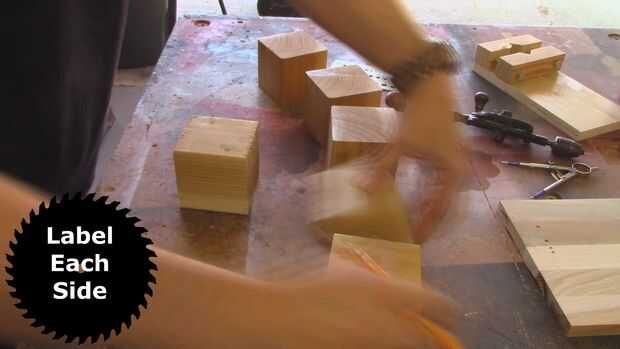 Cada lado del cubo, en todos los cubos, la etiqueta con el número que representa ese lado. Usted realmente sólo necesita marcar un cubo completo para los agujeros de 3/4 le a perforación. No es una mala idea para marcar a todos ellos.