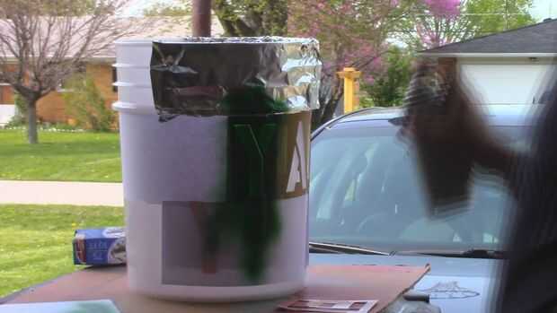 Cubo de cinco galones para los dados tirar el dispositivo. Sólo no olvides el corrector ortográfico tu trabajo, jajaja. Salí hacia fuera de la "Z" en mi cubo. No porque yo no revise mi ortografía. Había perdido la letra "Z" en el kit de mi carta. Así que la dejé hacia fuera.