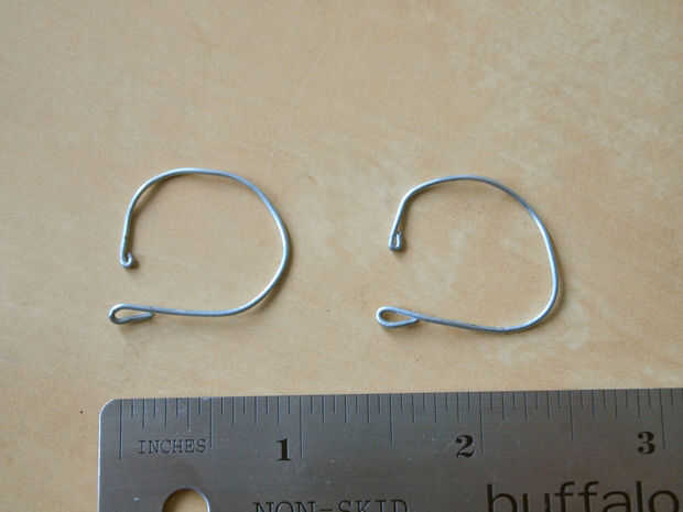 Cortar dos trozos de alambre de 7,5 cm (3 pulgadas) en longitud. Cada uno en un círculo casi cerrado, con la parte inferior más plana de la curva y los extremos doblada hacia atrás (ver imagen 2 anterior).