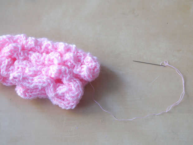 Para formar la corteza cerebral necesita más de 3 millones años de evolución humana. Aunque para una corteza de hilo se hará algún hilo de coser y una aguja. Dobla cada cordón cuatro veces y me cosió cada longitud juntos formando la forma general de cada hemisferio, aunque plano. Luego alineados lado a lado cada hemisferio y cosido junto al borde superior, dejando abierta la parte inferior, creando una forma de tazón de fuente.