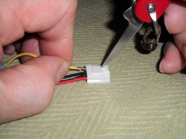 Usando los cables del conector, tome a la clavija estéreo de 3.5mm y conecte un cable negro a la funda, un cable amarillo para el anillo y un cable rojo a la punta.