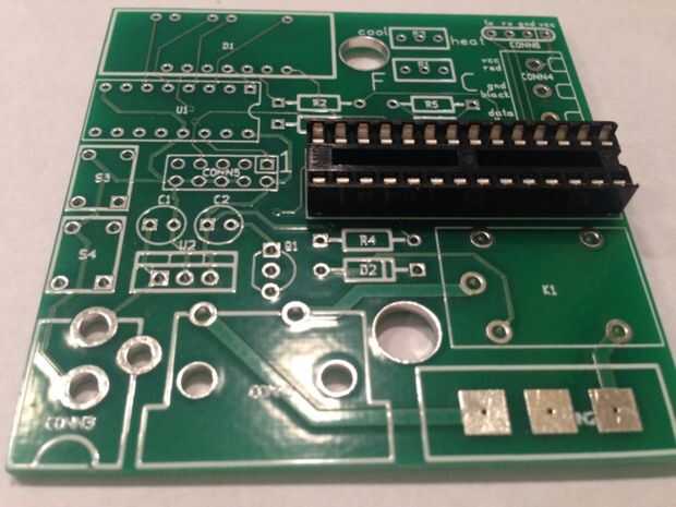Paso 3: Colocar y soldar el zócalo de 28 pines del IC (U1)