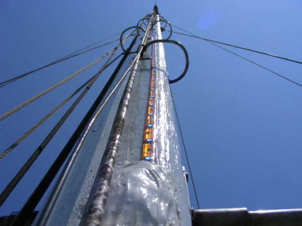 los segmentos de 3 cable luego ir a una caja de empalmes eléctricos en el centro del mástil.