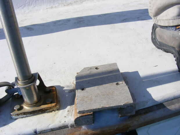 en la zona de conexión, había protegido con madera alrededor de la conexión y el punto de entrada en el casco y luego todo había rellenado con silicona.