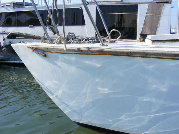 en la nariz del barco es otra tira con su propia entrada de alambre en el casco. Esto también es protegido por una tira de madera y recubierto de silicona.