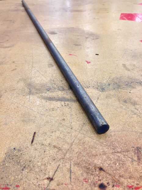 La barra de acción te se debe iniciar con 1/8" más pequeño que el agujero se ajusta a.  Mi banco tiene orificios de 3/4" por lo que estoy usando 5/8 stock.  La fórmula general para la medición de cuánto va a utilizar es multiplicar el alcance deseado de la herramienta por 1.5 entonces añadir el grueso de la bancada se puede montar en y luego añadir el espesor máximo de lo que gustaría poder sostener con él más unas cuantas pulgadas más como un margen de error.  La holdfast en la foto tiene 7" llegar, montajes en un 5" tapa gruesa y maxes en 6" así que empecé con una barra de 22" de largo.  Algunos discos de fijación tienen una curva más extrema y hacer una curva cerrada en casi 90 grados y requerirá más o menos largo.