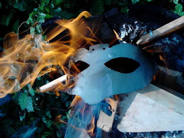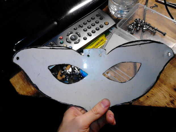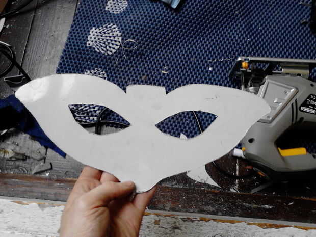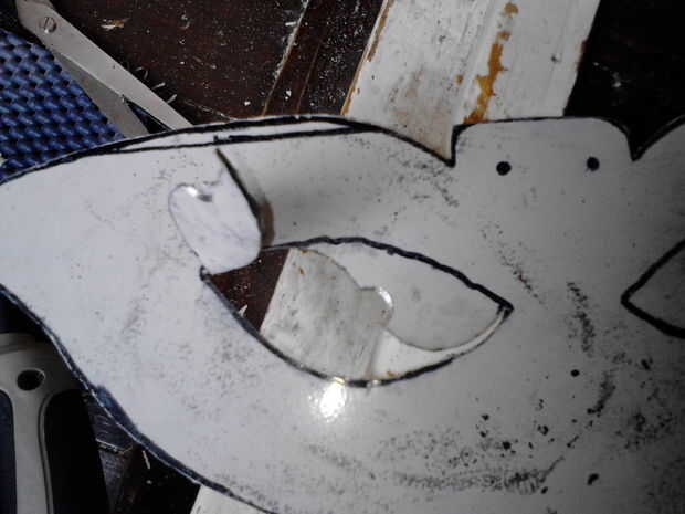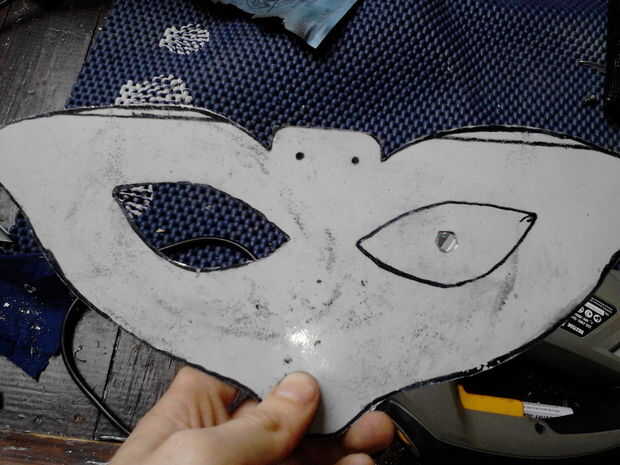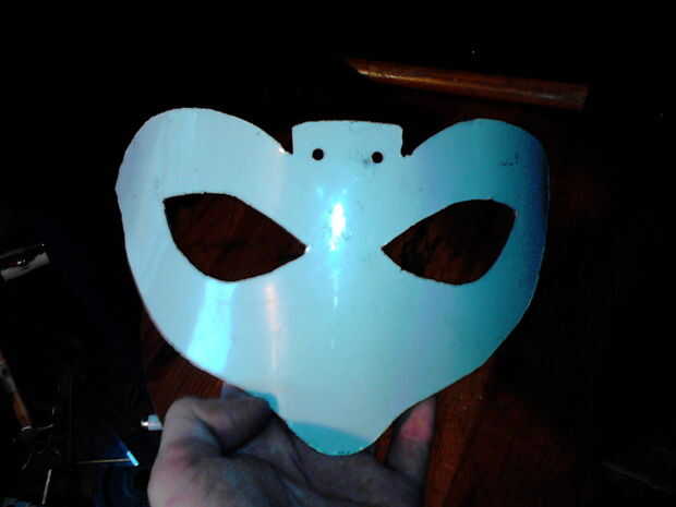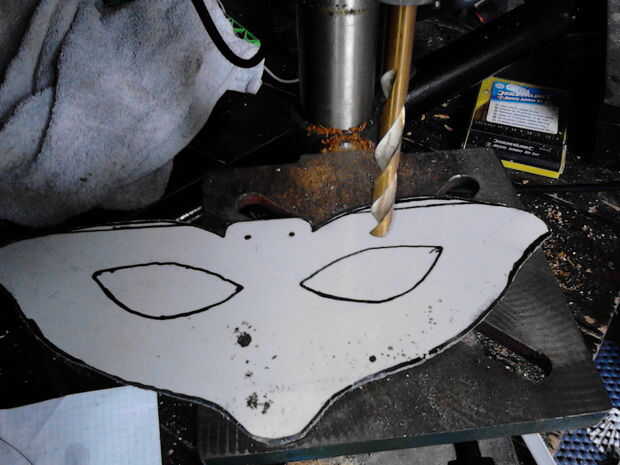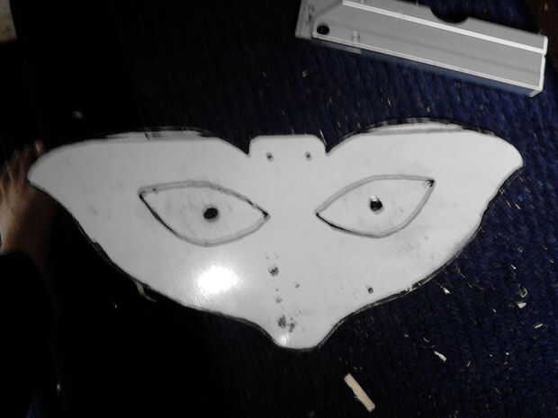Dibujar una forma áspera en la cartulina, ajustar o hacer un nuevo minoritarios hasta se ve la forma que desee, sólo tiene que extraer la 1 parte. Realmente hice 2 antes de instalarse en este diseño. Recuerde que está diseñado para desviar los golpes de la nariz, frente y mejillas, así como asustar a tus enemigos. Una vez usted colocar en un pliegue de diseño lo doble, corte, perno en y usted puede usarlo! (fotos 8, 9, 10, 11,12, 13 y 14)