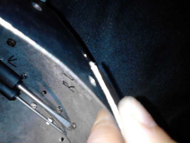 Transferir el prototipo de cartón en su metal y corte, para cortar lo ojos sólo taladro un agujero grande en el centro y trabaja su manera alrededor con una sierra de calar (cuadros 15, 16, 17, 18, 19, 20, 21 y 22). Asegúrese de transferir los agujeros de la cartulina, estos dan una buena pauta para la colocación de los minoritarios. Ahora puede doblar los minoritarios y colocarlo, para mí va entre la parte delantera a la banda y la banda de circunferencia como el cartón.