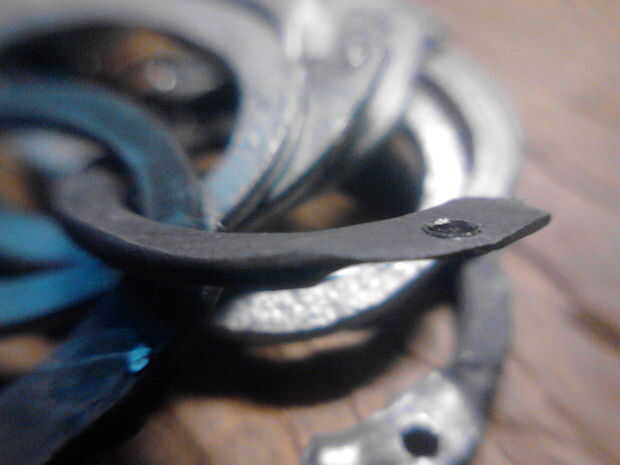 En este paso es necesario preguntarte si quieres chainmaille. Si es así ¿qué? Decidí hacer 6 en 1 maille remachada, cual simplemente poner es una tarea horrible y lento... Así que si está bien con no chainmaille / más ligera de la armadura clavada no encontrar un ible u omitir este paso! Sin embargo, si desea que el mirar impresionante y una de las formas más fuertes de la armadura de cuerpo medieval, usted debe ir para remachado. Puesto que hay un montón de ibles / tutoriales en línea sobre cómo hacer chainmaille (clavado o no) no entrar en mucho detalle, pero pongo este paso porque explica algunas acciones cruciales. Si usted realmente no puede entender voy a hacer una corta imagen carrete sobre cómo hacerlo. Para hacer las tijeras de corte de anillo superposición sólo solía un archivo crea un pequeño vacío a pocos mm de la punta, hacer el vacío del mismo tamaño que el diámetro de su alambre.