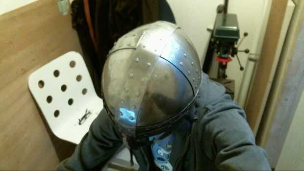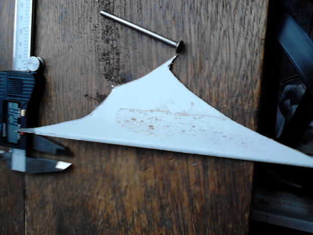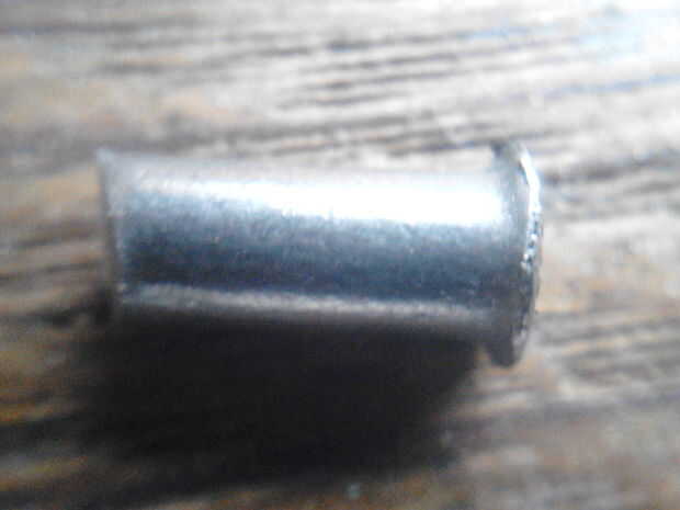 Para hacer los remaches que acaba de tomar un clavo, cortó la cabeza, cortó el punto y cortar la uña por la mitad, todos con un Cortapernos. Entonces coloqué mi yunque y martilló la parte superior en una seta. Para obtener la longitud correcta pongo a través de los orificios en el testpieces y averiguado por ojo cuánto tenían que ser, para mí resultó para ser aproximadamente 6 mm. Recuerde hay lugares donde 3 capas de metal ponen ontop de cada uno para que los remaches deben ser más largos. Debe haber unos 2mm que sobresale para hacer la cabeza del remache.
