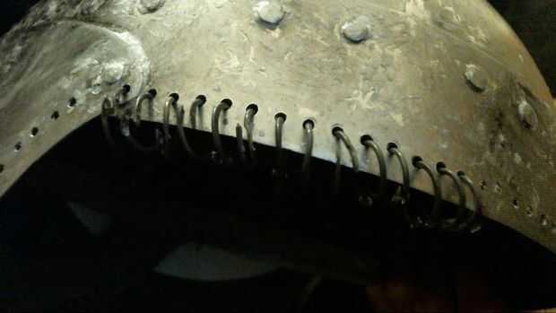 Bien por lo que he cambiado mi mente sobre el chainmaille, al menos por ahora debido a que terminaba para la feria. En vez de ir con el 6 en 1 remachadas, fui con 4 en 1 tope maille. Si cambio se me va actualizar el ible! Para obtener la maille butted acabo de hacer un rectángulo lo suficientemente grande como para envolver alrededor de la cabeza y poniendo un anillo a través de un agujero y cerrar sobre el rectángulo.