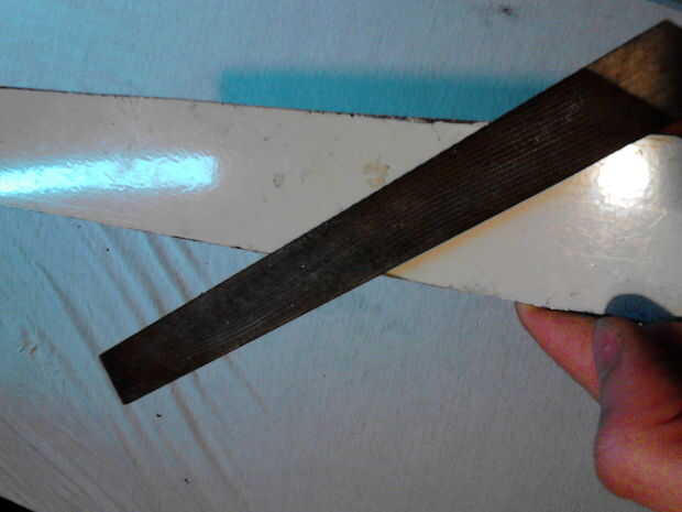 Después corte pudo desear utilizar un archivo para obtener los bordes rectos y lisos, recuerde utilizar una regla para asegurarse de que su recta todos. Realmente utilizar el marco de una puerta (uno de los plásticos prefabricados) para las partes que eran demasiado largas para mi regla.