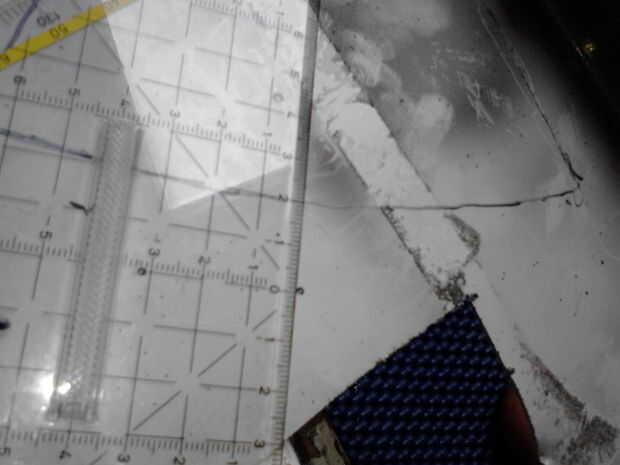 Ahora transferir su panel sobre alguna chapa con cerca de 1.5cm a cada lado. Añadir otra línea en alrededor de 1,5 cm de distancia (el primer panel que hice 2cm pero que resultó para ser mucho (cuadros 25 y 26). Lo hice marcando sólo algunos puntos a 1,5 cm y luego simplemente conecté los puntos. Cortar este panel hacia fuera y permite iniciar apresurados!