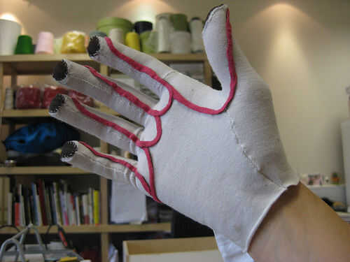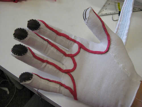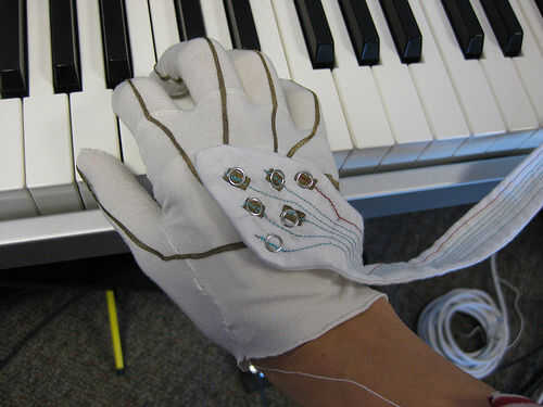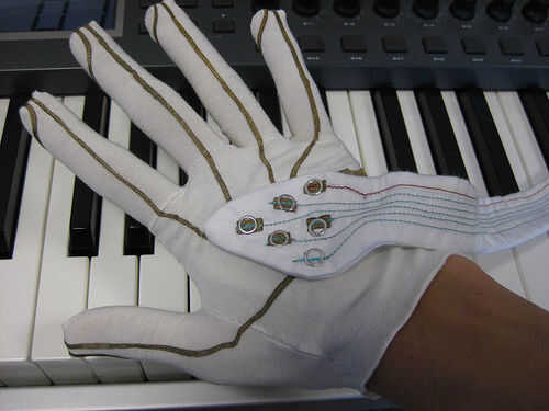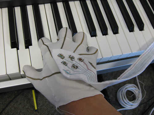 Un guante con sensores de presión de todo tipo de tela en cada punta de los dedos. La idea vino de alguien que quería utilizarlo como profesora de piano con los niños a visualizar la diferencia entre "p" piano (suave) y forte "f" (disco duro).
