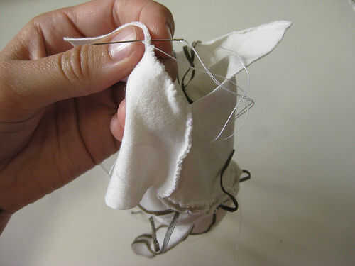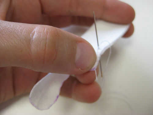 En lugar de coser los bordes juntos en un punto de funcionamiento, usa una puntada dobladillo, pero no plegar a la tela. Esto no da los puntos más bellos, pero reducir la cantidad de tela.
