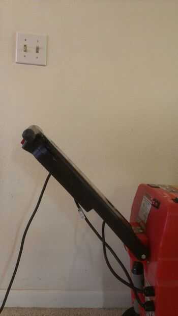 La máquina pulveriza el agua en la alfombra luego apesta detrás hacia fuera. La boquilla de aspiración es el borde delantero de la máquina. He encontrado que mediante el uso de la máquina con la manija en la posición más baja (ver foto) empuje la boquilla en la alfombra y chupan más agua hacia fuera.