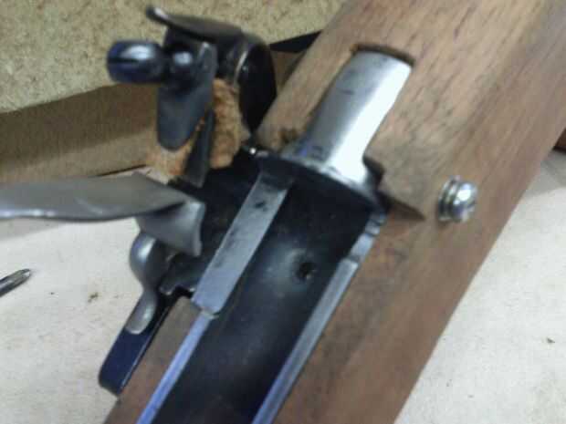 El fin de incumplimiento del cañón fue perforado y roscados M4 diámetro de un tornillo de fijación que surge desde el guardamonte les atar juntos en la bolsa. al final del cañón fue bloqueado con un trozo de chapa de acero que también llena la brecha entre la cerradura y cilindro. También presentar un asiento enfrente de la cerradura de un pivote de la bisagra.