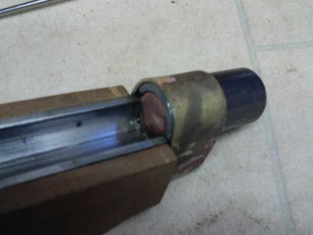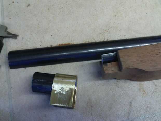 Cortar un disco de latón para bloquear el cañón en la boca y una corta longitud del tubo del cañón por el dato que esto todos se celebrará en el lugar con una charanga que corté y plata soldadas juntas.
