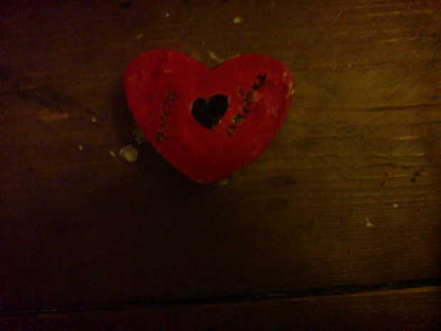 Como se puede ver no ha sido dividida en dos todavía. Esto es donde entra el papel. Suavemente Coloque el corazón en dos. El papel que tanto palo al molde y tendrás que raspar apagado o simplemente se saldrá. Unos pequeños trozos de yeso están probable que se caiga pero si mal se puede lijar de darle un mejor acabado.