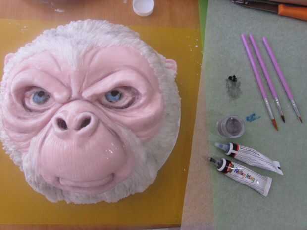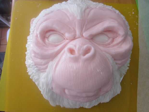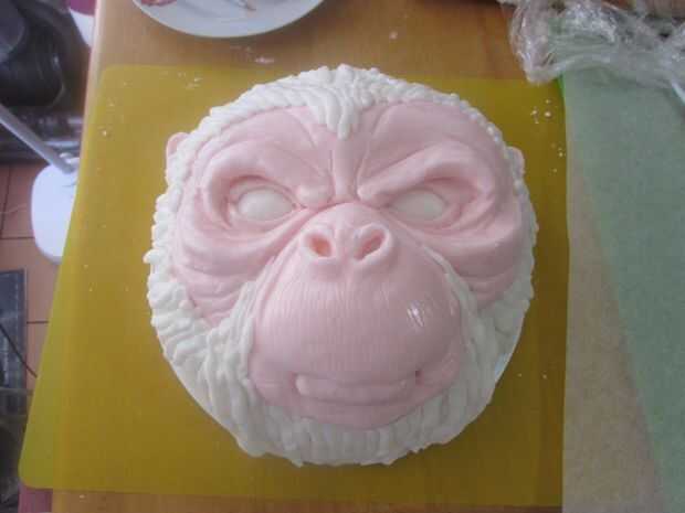 Para agregar profundidad a la cara. He pintado pequeñas cantidades de negro escrito guinda a un cepillo humedecido a curvas de la boca y los pliegues de la cara, los párpados superiores e inferiores alrededor de la nariz. Si usted puede encontrar comestibles pintura para adornarlo sería mejor porque la guinda de la escritura es un poco difícil de combinar.