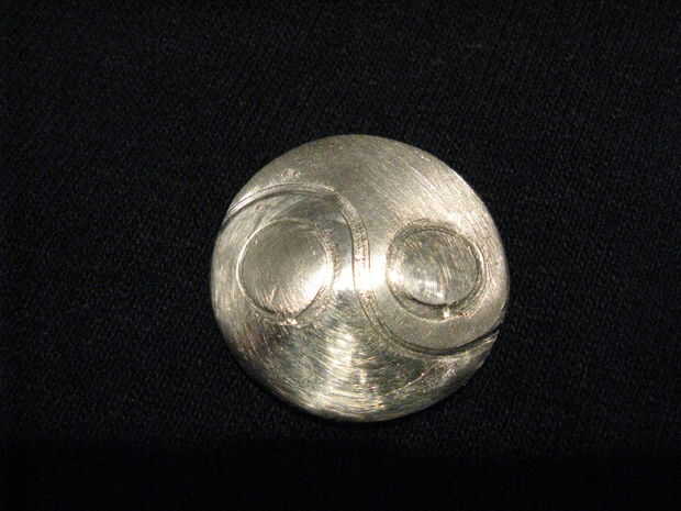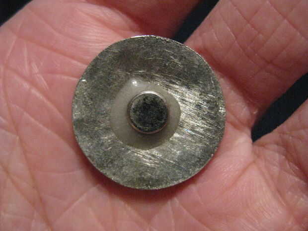 Las monedas fueron martillados planas, luego presentado en las líneas correctas. Luego utiliza clips para crear las líneas con sangría y lijado/pulido las piezas liso. Imanes de neodimio pequeños se ajustaron a las espaldas.